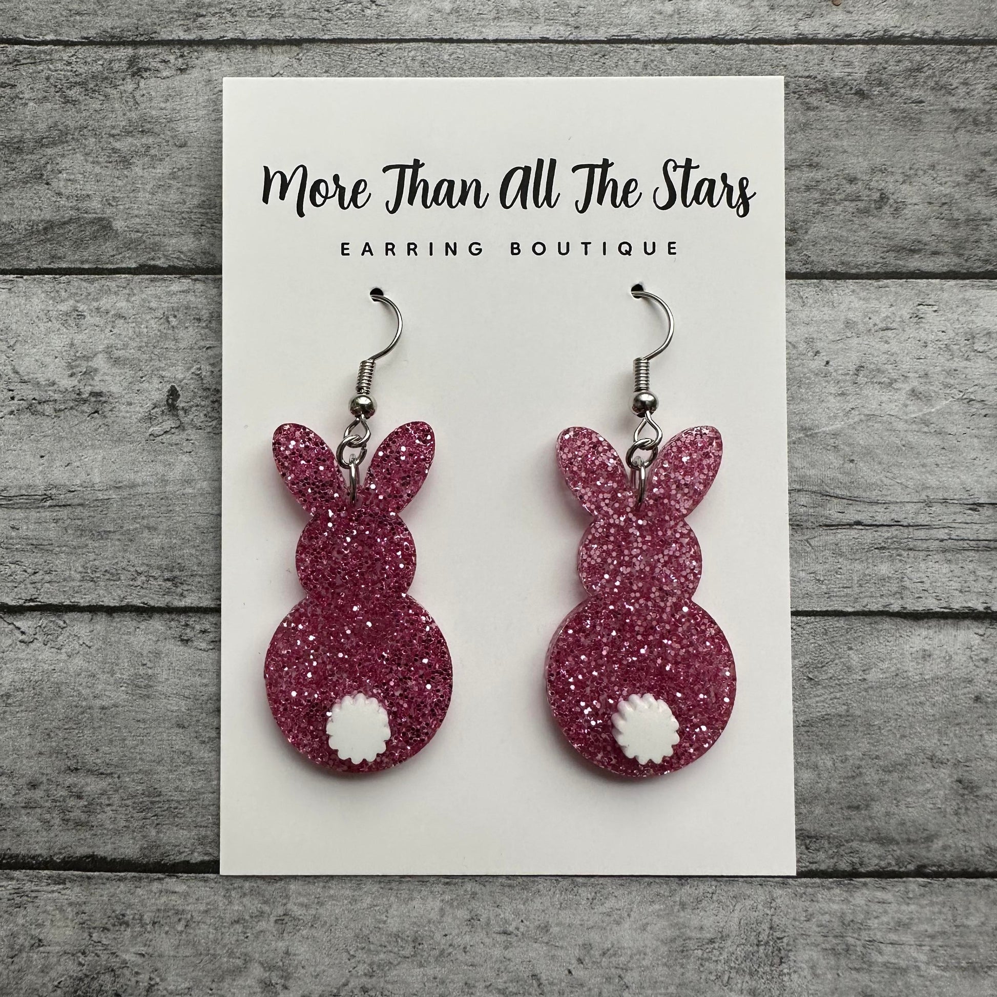 Easter Pink Glitter Bunny With Fluffy Tail Earrings